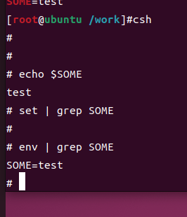 but export가 들어가면 환경변수 / corn shell(csh)에 들어갔을 떄 값이 나옴 export SOME=test
